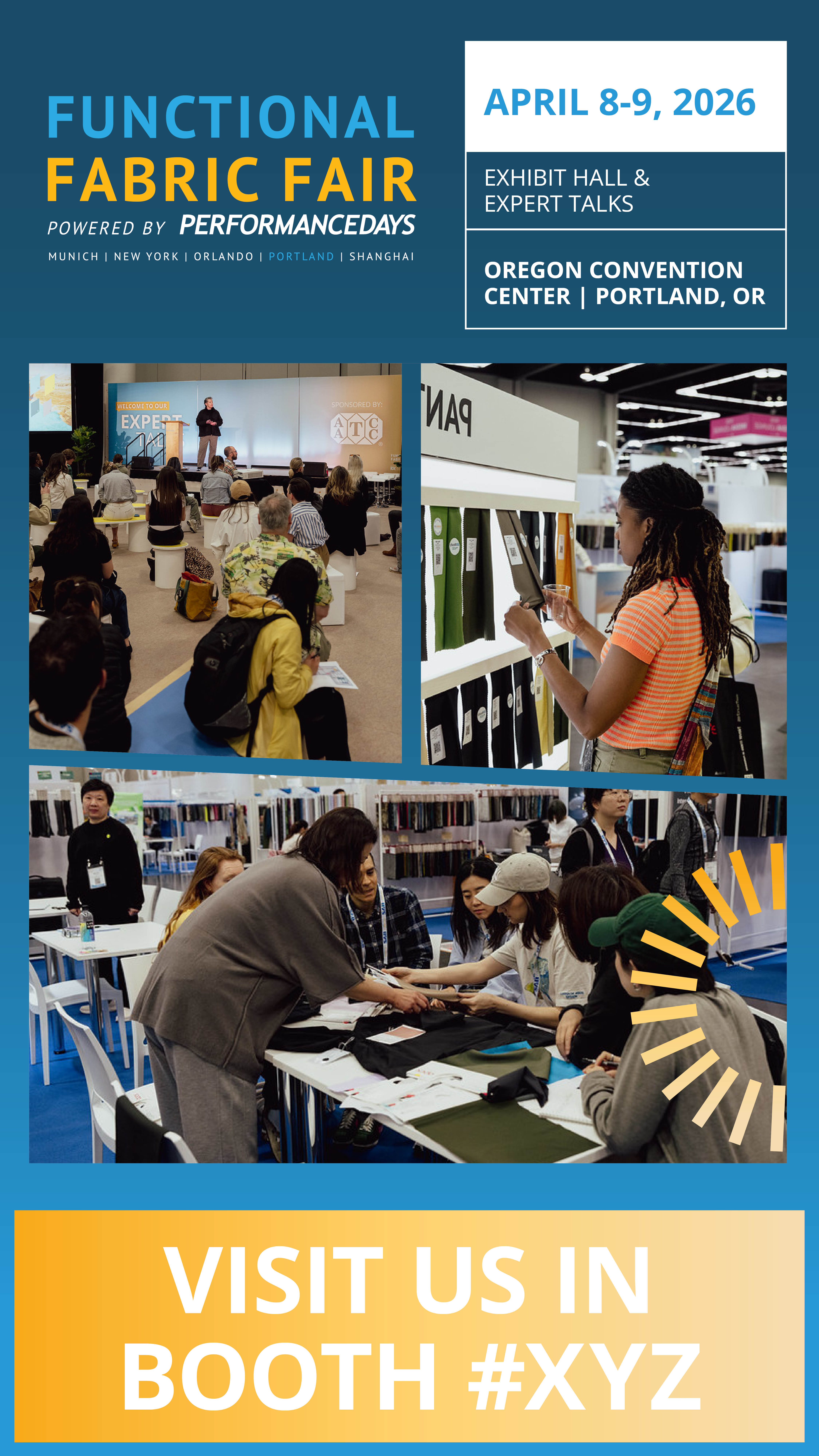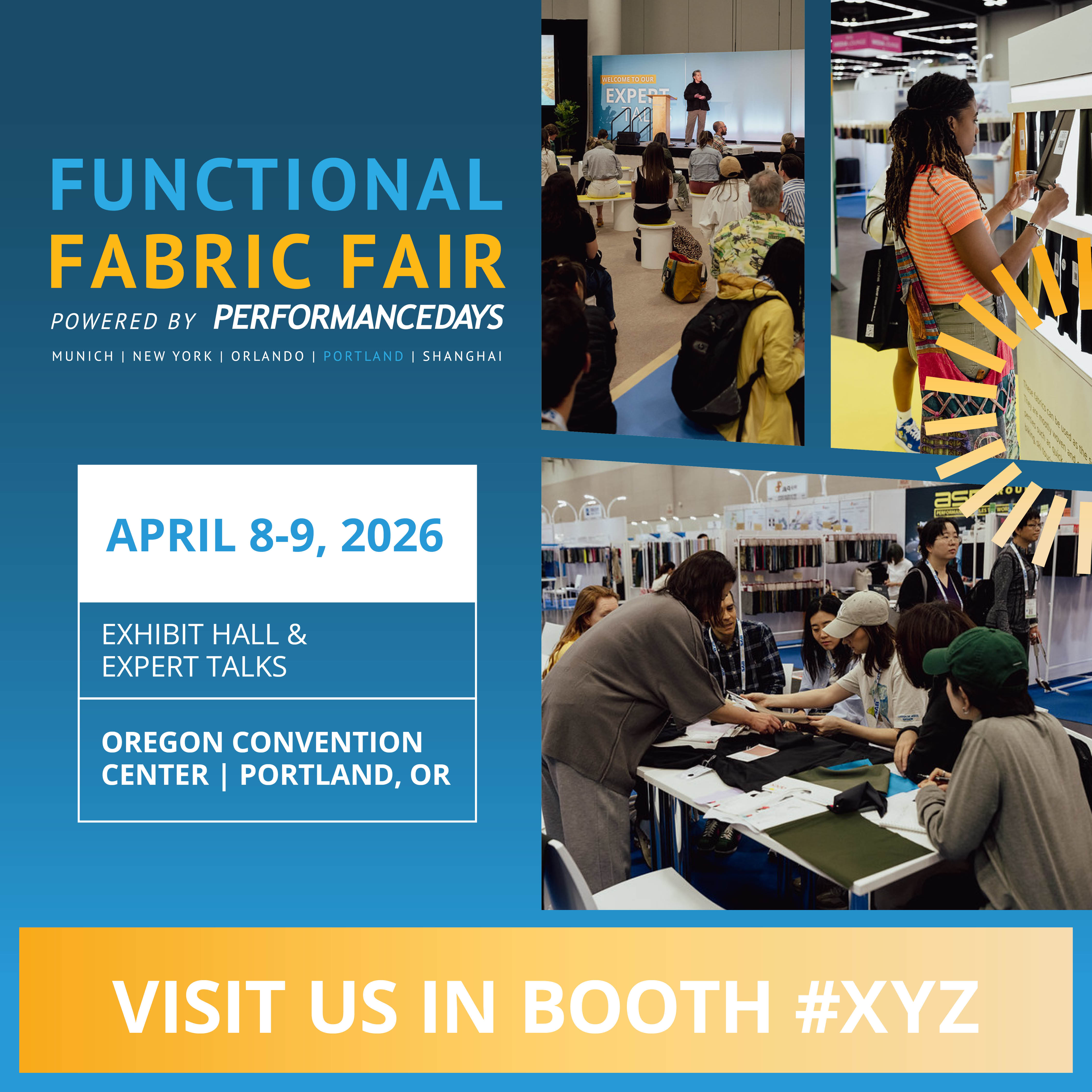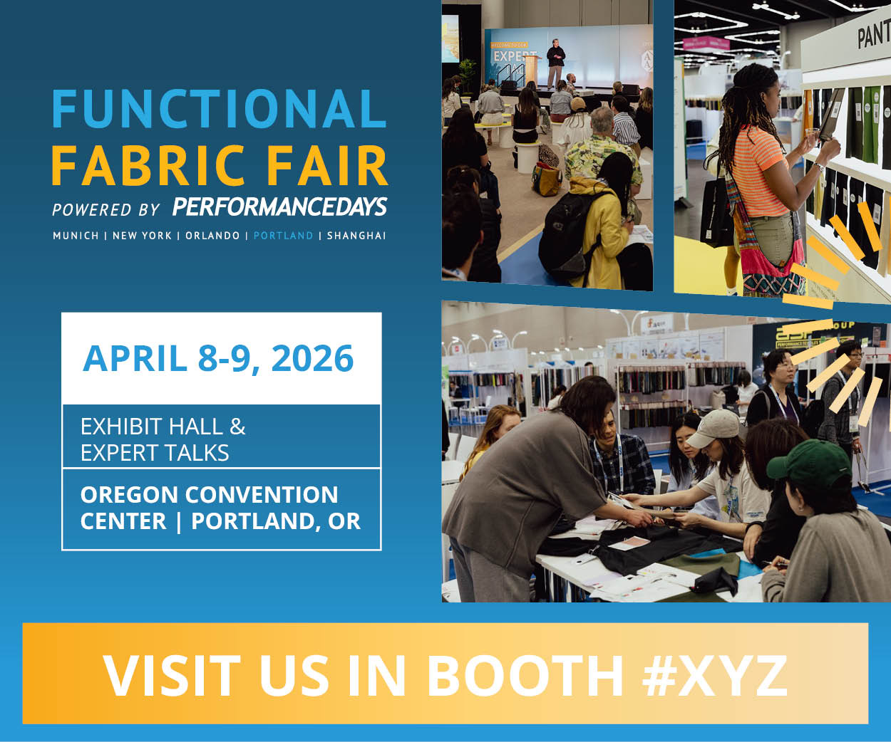 The Customer Invitation Program offers complimentary personalized web banners and social posts to market your company’s presence at Functional Fabric Fair. Here are a few benefits of participating in the Customer Invitation Program: